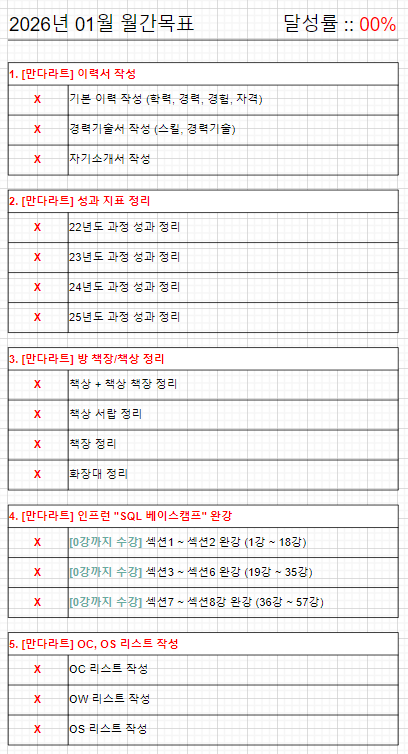 [2026.01.08] 2026년 1월 월간목표